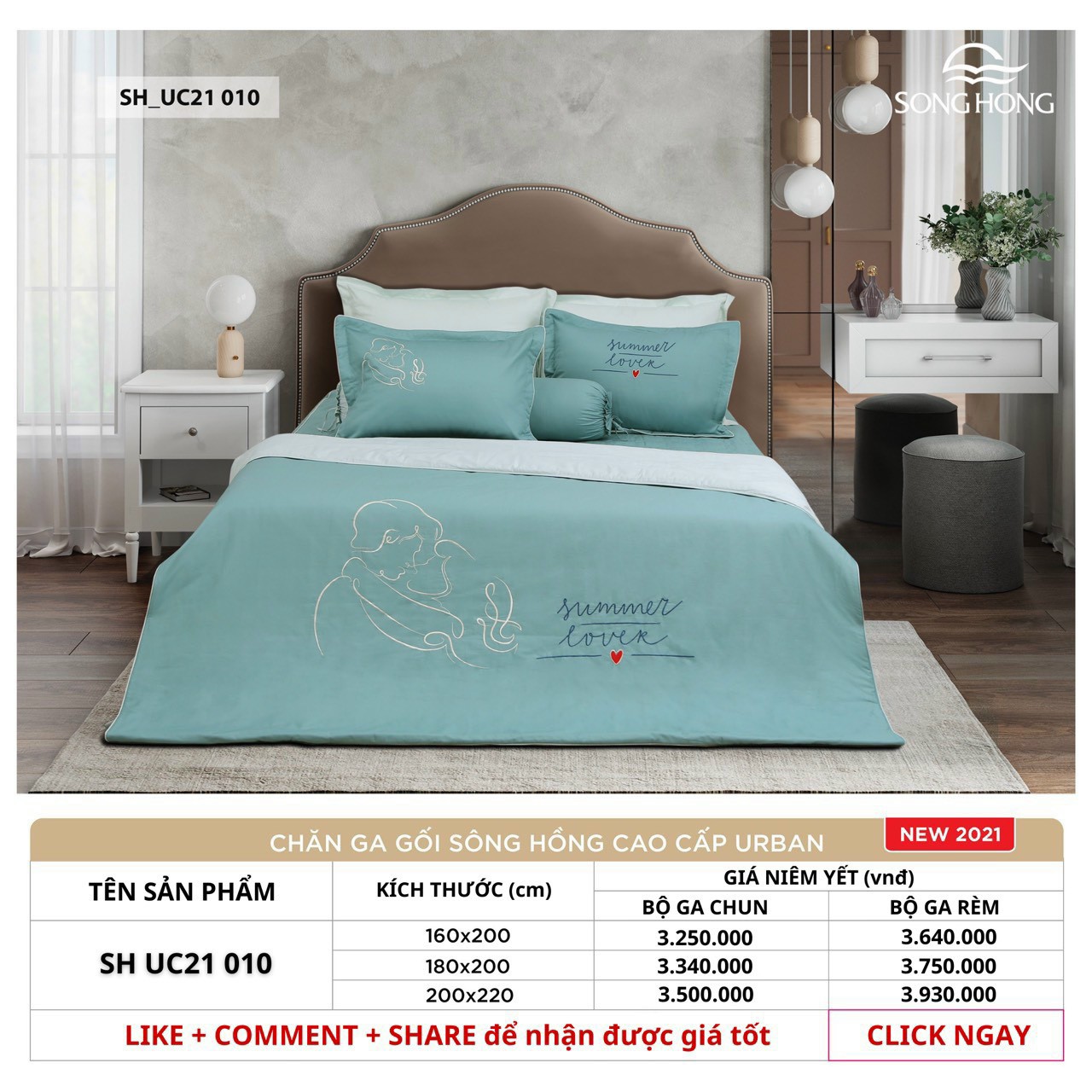 Bộ chăn ga gối Sông Hồng SH _ UC 21 010