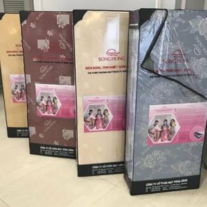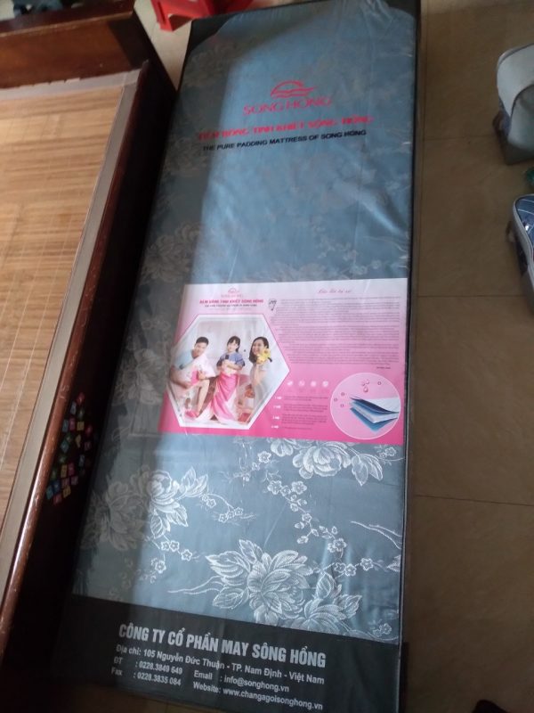 Đệm bông ép Sông Hồng vải gấm 3 mảnh được sản xuất trên dây chuyền công nghệ hiện đại nhất thế giới. Bộ sản phẩm này hoàn toàn đáp ứng tiêu chuẩn của các Khách sạn, Resort cao cấp và các gia đình có điều kiện kinh tế tốt ở Việt Nam.